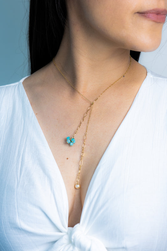 Collier Cravate et perle d'eau douce - bleu turquoise