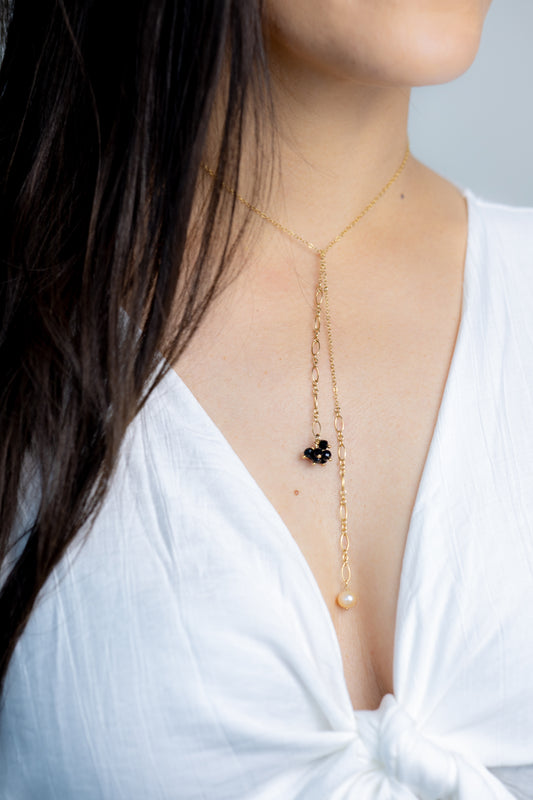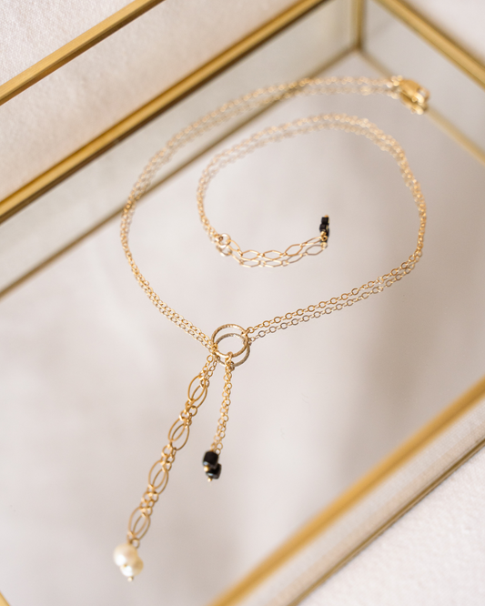 Collier Cravate et perle d'eau douce - noir