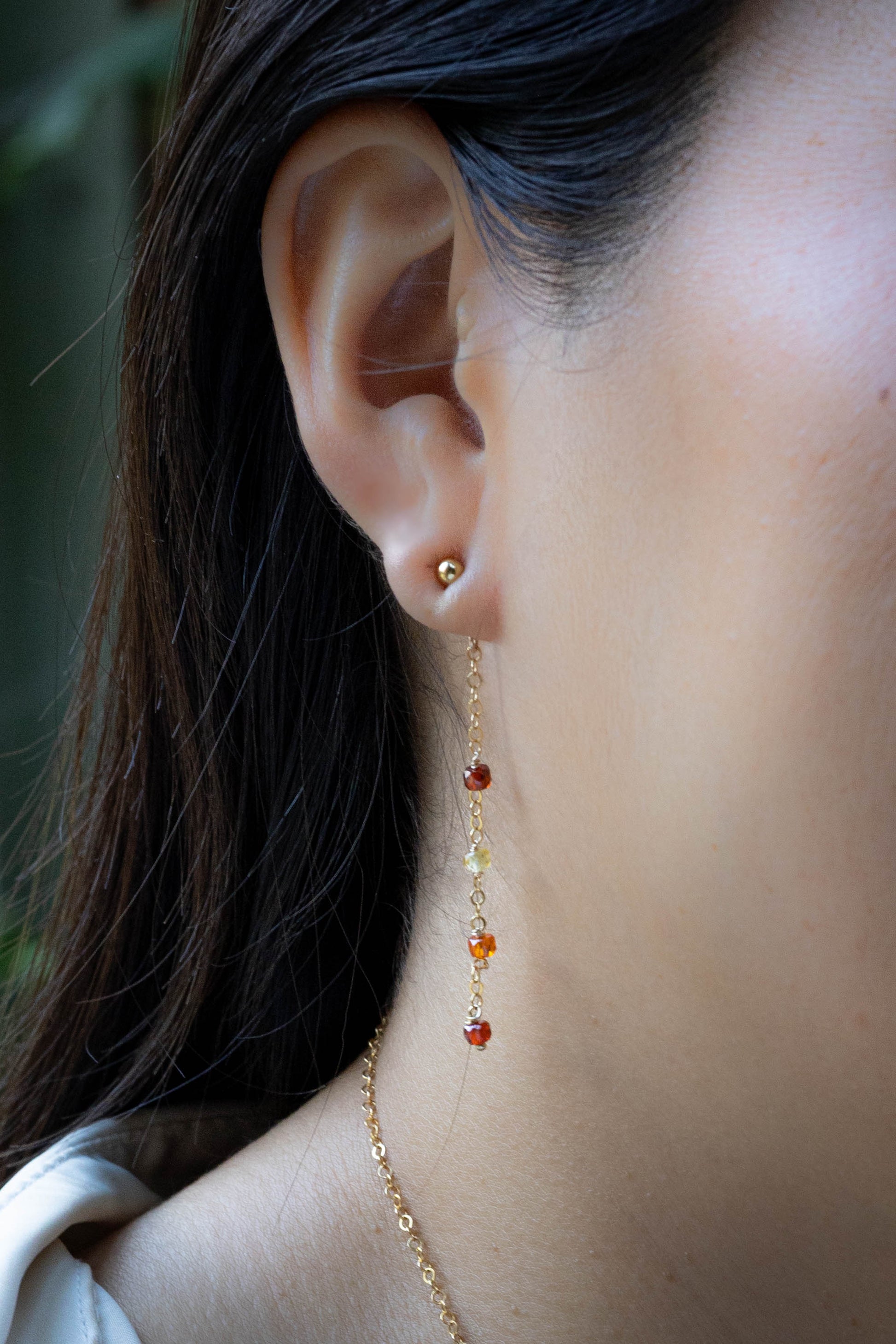 Inspirées par les lumières dorées et les teintes flamboyantes de l’Été Indien, ces boucles d’oreilles célèbrent la chaleur et la douceur de la saison.