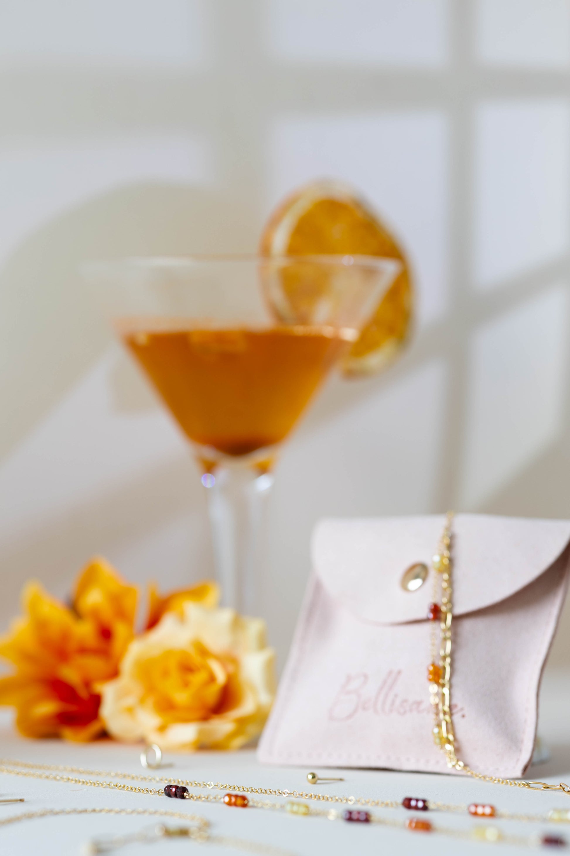 Les pierres et perles utilisées sont naturelles, ce qui peut entraîner de subtiles variations de couleur — chaque bijou est ainsi unique.